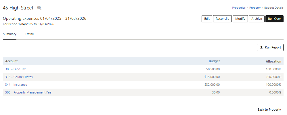 This article is designed to guide you through the process of viewing a budget by tenancy for a property. Understanding your budget allocations and how costs are distributed across tenancies is key to managing your property's finances effectively. Below, we'll show you how to access and interpret your property's budget information.