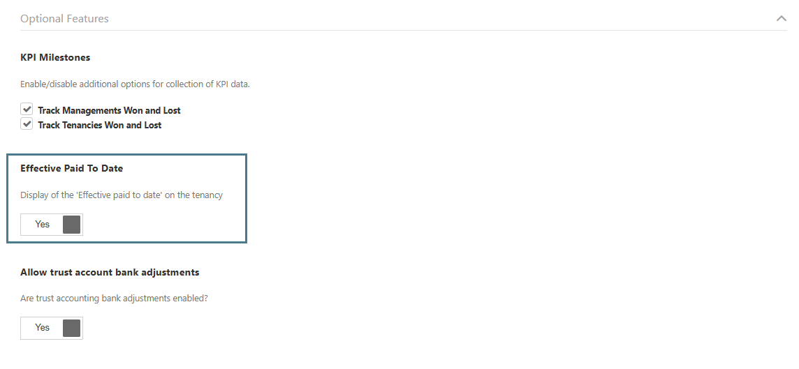 This article will explain what the Effective Paid to Date is when it comes to managing leases/tenancies, how it calculates the up-to-date payment status of a lease/tenant, and the step-by-step guide on enabling this useful feature in your account settings. Understanding the Effective Paid to Date ensures that you can accurately monitor rental payments and stay informed about the leases/tenant's payment standing.