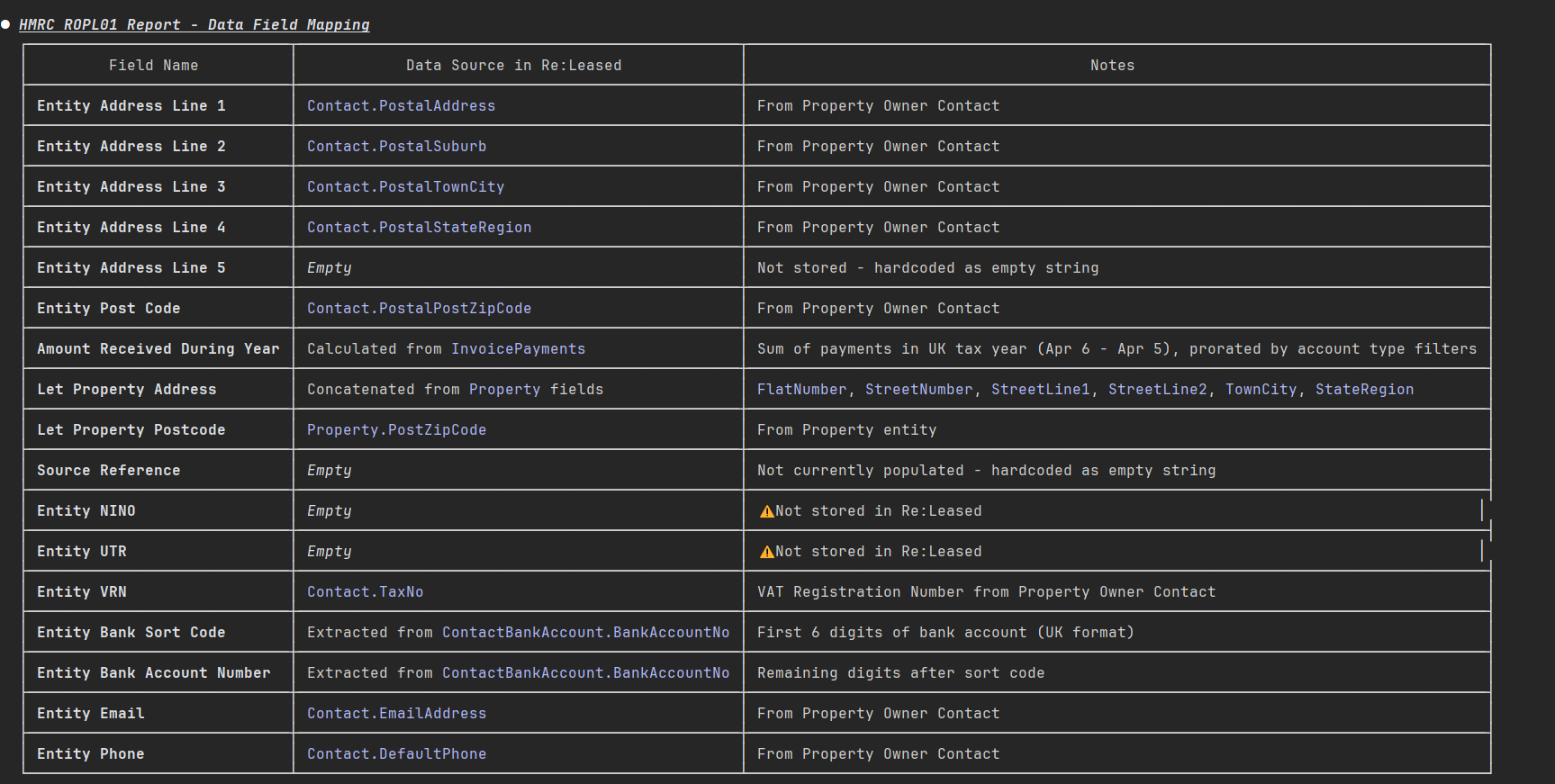 The ROPL01 Report in Re-Leased captures all relevant property income transactions that fall within the UK financial year (April 6 to April 5 of the following year).
