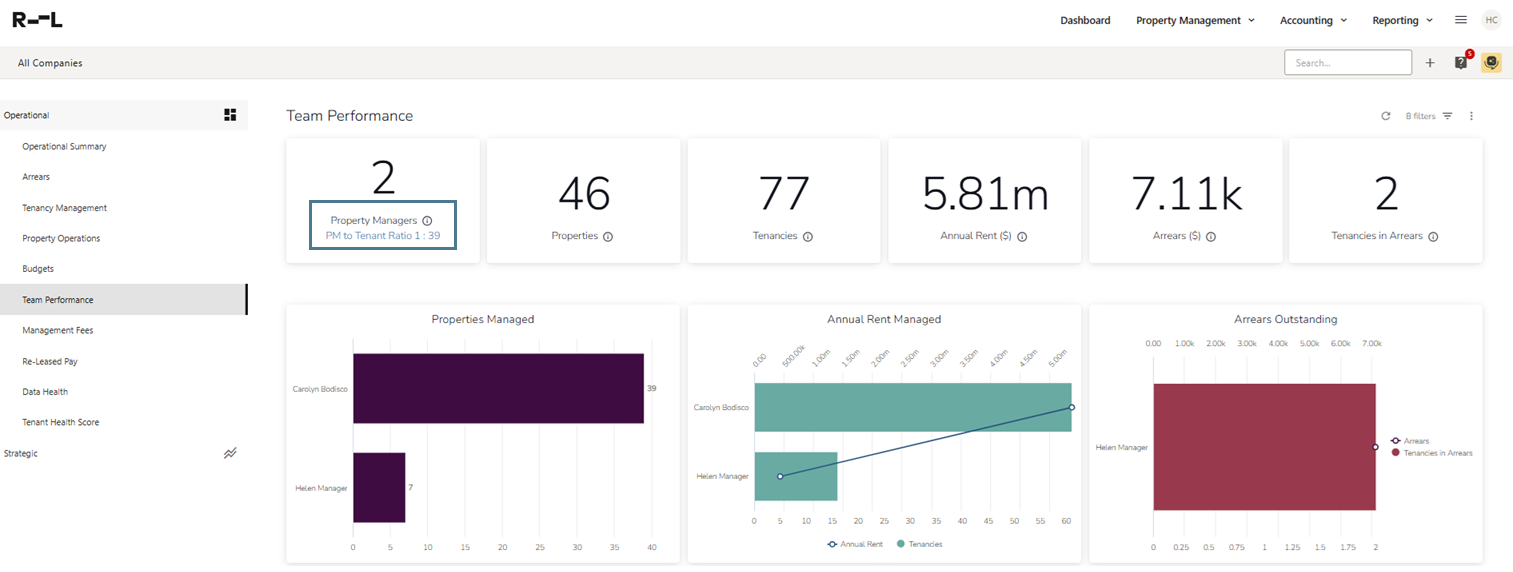 As a property manager to tenant ratio is all about effective resource allocation it will live within the team performance dashboard on Insights. To find a ratio simply navigate to the Insights section,