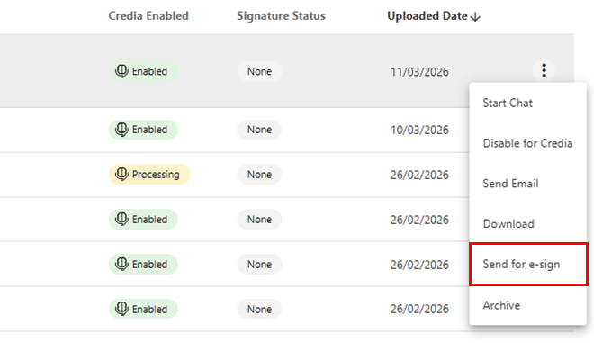 - Select Send for E-Sign