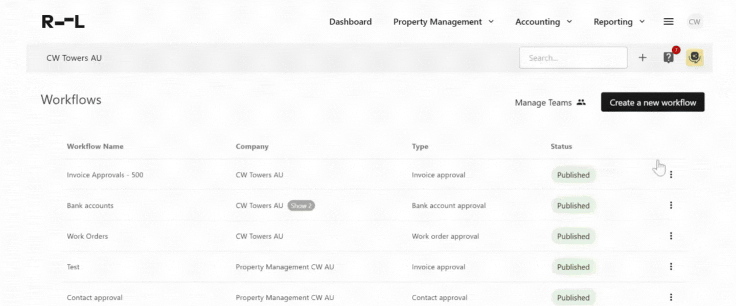 Once published, any bank account matching your criteria will automatically enter the workflow and progress through each step based on your defined rules.